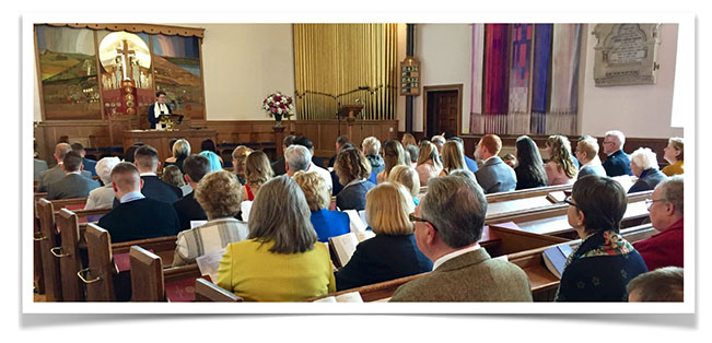 At present the main service of worship takes place on a Sunday at 11.00am although in the summer months late June to August the time is brought forward to 10.30am with an average attendance of around 80. Currently the service is one hour in length with a mix of hymns both old and new along with other songs and anthems led by the choir of 8 under the tutelage of the organist and choir master. While the format is quite traditional, the content is less so with interaction, reflection, responses and relaxed atmosphere. There are 4 main communion services during the year which is complemented with a monthly round the table communion on the first Sunday of the month. There is a rota of willing helpers that include greeters at the door, Beadle, Bible Readers and members leading Prayers of Intercession on the first Sunday of the month. The congregation has two Elders who have completed the Worship Leader’s Course.