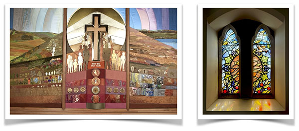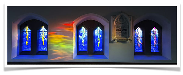 Our Church has been well maintained both internally and externally. The 1872 building by John Burnet, originally for the Free Church, featured a square tower with a pyramidal roof. After the Presbyterian church was bombed in 1941, the churches merged, retaining the tower as a memorial. Original stained-glass windows remain alongside newer artworks. Sadie McLelland’s 1972 windows, depicting ‘Recurrent Creation’, illuminate the church with vibrant colours. Hannah Frew Paterson’s 1981 embroidered panels behind the communion table reflect life’s development, shaped by the hill for the cross. Sarah Sumison’s 1990 woven silk hangings convey themes of humility and love. John Lawrie’s 1992 Gospel Windows highlight key aspects of Christ’s humanity and sacrificial work. Susan Bradbury’s 2012 stained glass windows, illustrating Faith, Hope, Love, Joy, and Peace. The tower’s bells were made by Wilsons of Glasgow in 1871. Originally six, two more were added to celebrate the millennium. The church has a universal access. Adjacent to the sanctuary, there is an office, vestry, which is used as a creche and cloakroom.