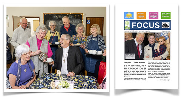 Another part of our outreach is our Church magazine, FOCUS. This is a high-quality quarterly publication (circulation 1200 copies) which is delivered to every house in the village along with the Community Advertiser and available via local shops and the library. We also use the Church Website and our Facebook Page to provide outreach digitally. In addition we deliver a Christmas and Easter card, with list of services and events, each year to every household in the village.